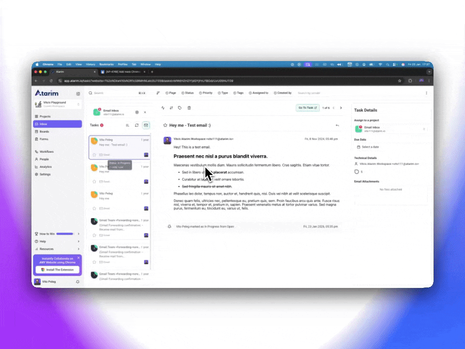 Inside your Email inbox, you can now select multiple emails and perform bulk actions like changing statuses, priority, adding tags, bookmarking and delete.